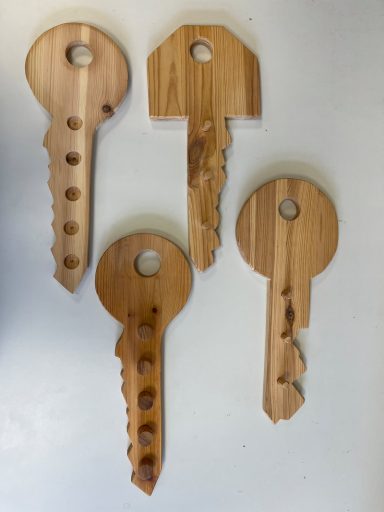 In der 8. Klasse fertigen die Schüler*innen ein individuelles Projekt wie zum Beispiel eine eigene Tischtenniskelle, ein Schlüsselbrett oder ein Schneidbrett.